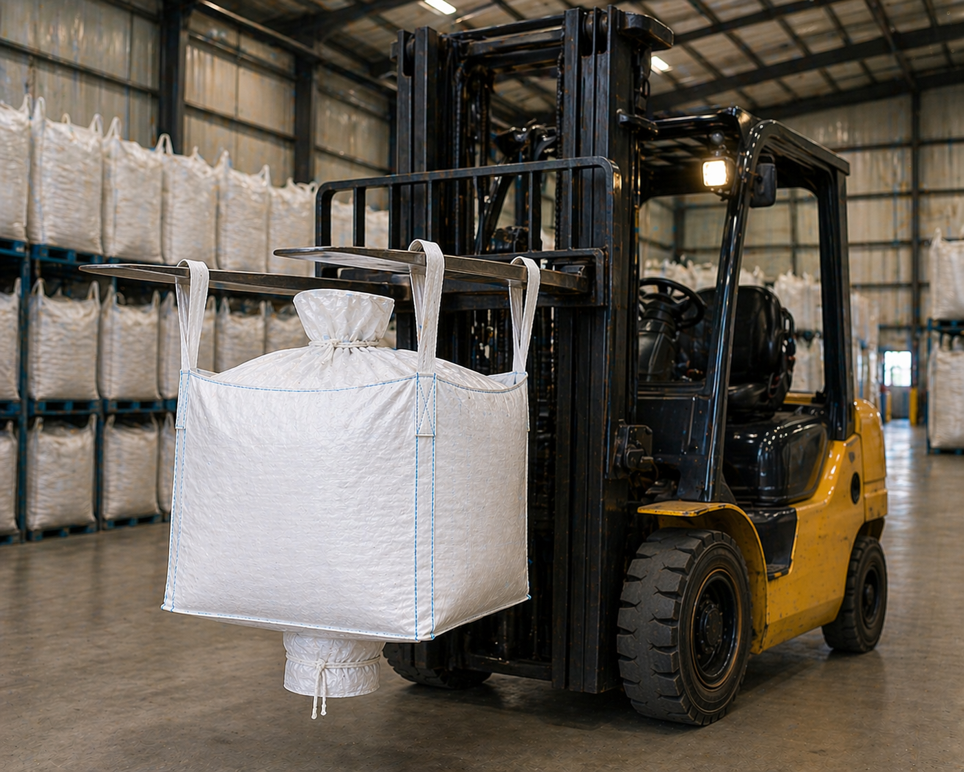 This format is commonly used in operations handling resin pellets, agricultural products, construction additives, food ingredients, and light industrial powders where smaller batch control is critical. The coated woven polypropylene fabric helps resist moisture exposure while preserving structural integrity under repeated lifting cycles. Reinforced stitching at all stress points adds durability where it matters most.