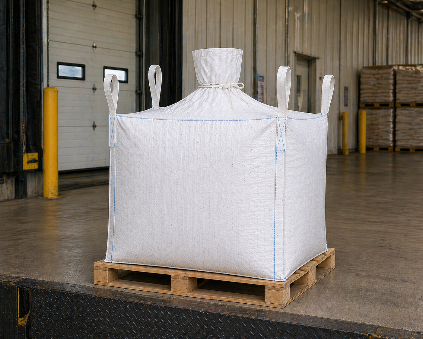 This configuration is widely used across resin handling, agricultural processing, construction materials, chemical powders, and feed ingredients where containment and predictable flow are essential. The coated woven polypropylene fabric helps resist moisture intrusion while maintaining strength under repeated lifting and stacking cycles. Reinforced stitching at all load-bearing points enhances durability and extends service life in demanding operating environments.