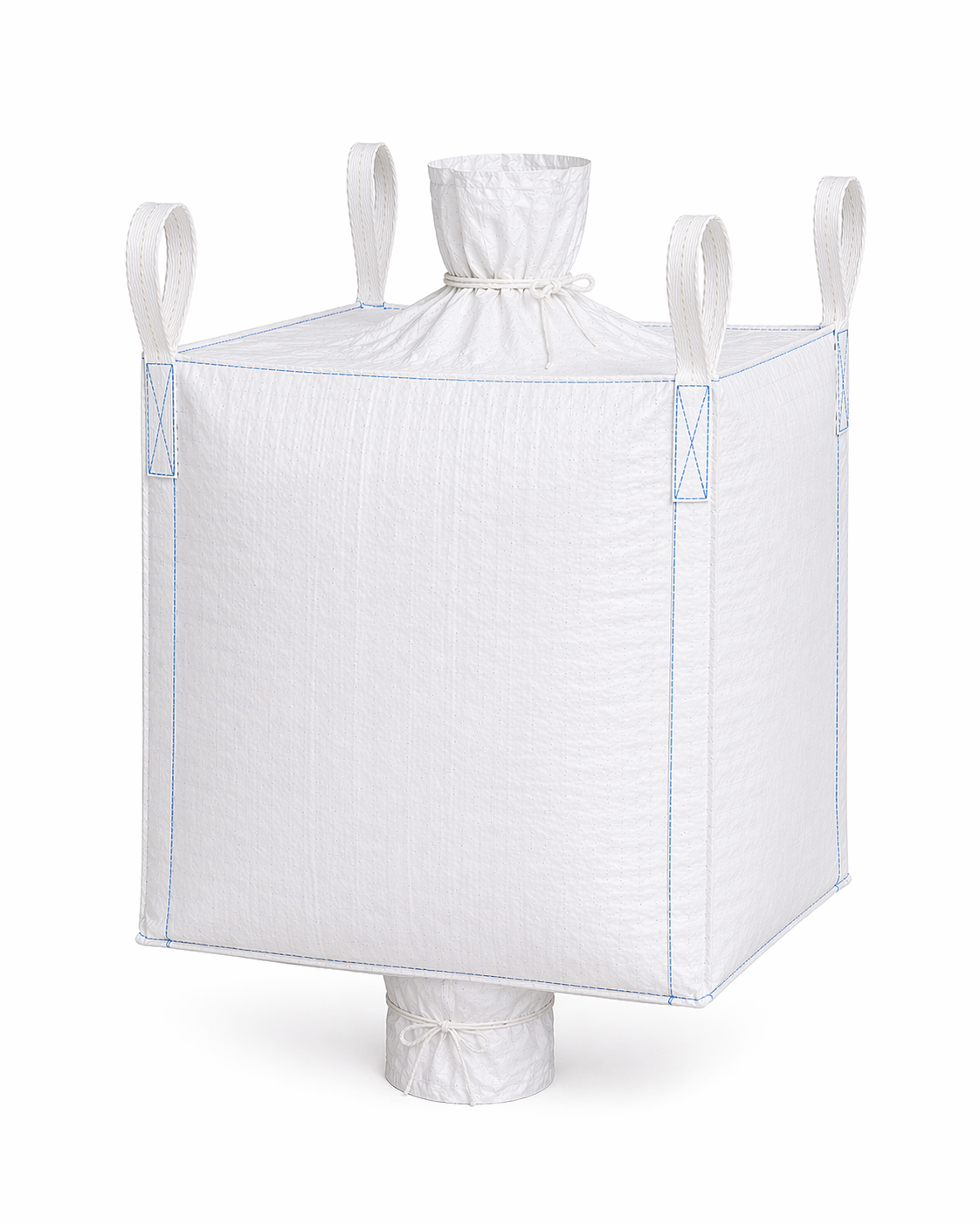 The duffle top is designed for unrestricted filling, especially useful when dealing with surge loads or less predictable material flow. Once filled, the spout bottom allows operators to meter discharge with precision, whether feeding into hoppers, mixers, or downstream processing equipment. Combined with siftproof seam construction, this setup keeps fine, dusty materials fully contained—no leakage at seams, no unnecessary cleanup.