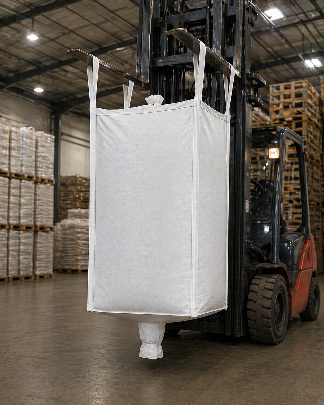 The dual-spout system transforms this FIBC into a controlled conduit within your production line. Your filling operator can maintain a completely enclosed, dust-free seal via the top spout, while the bottom discharge spout allows for a surge-free, metered feed into downstream mixers or hoppers. Because this model utilizes a U-panel construction, the vertical side walls remain significantly more rigid than circular alternatives, preventing the “belly” effect that causes bags to lean into warehouse aisles or overhang pallet edges.